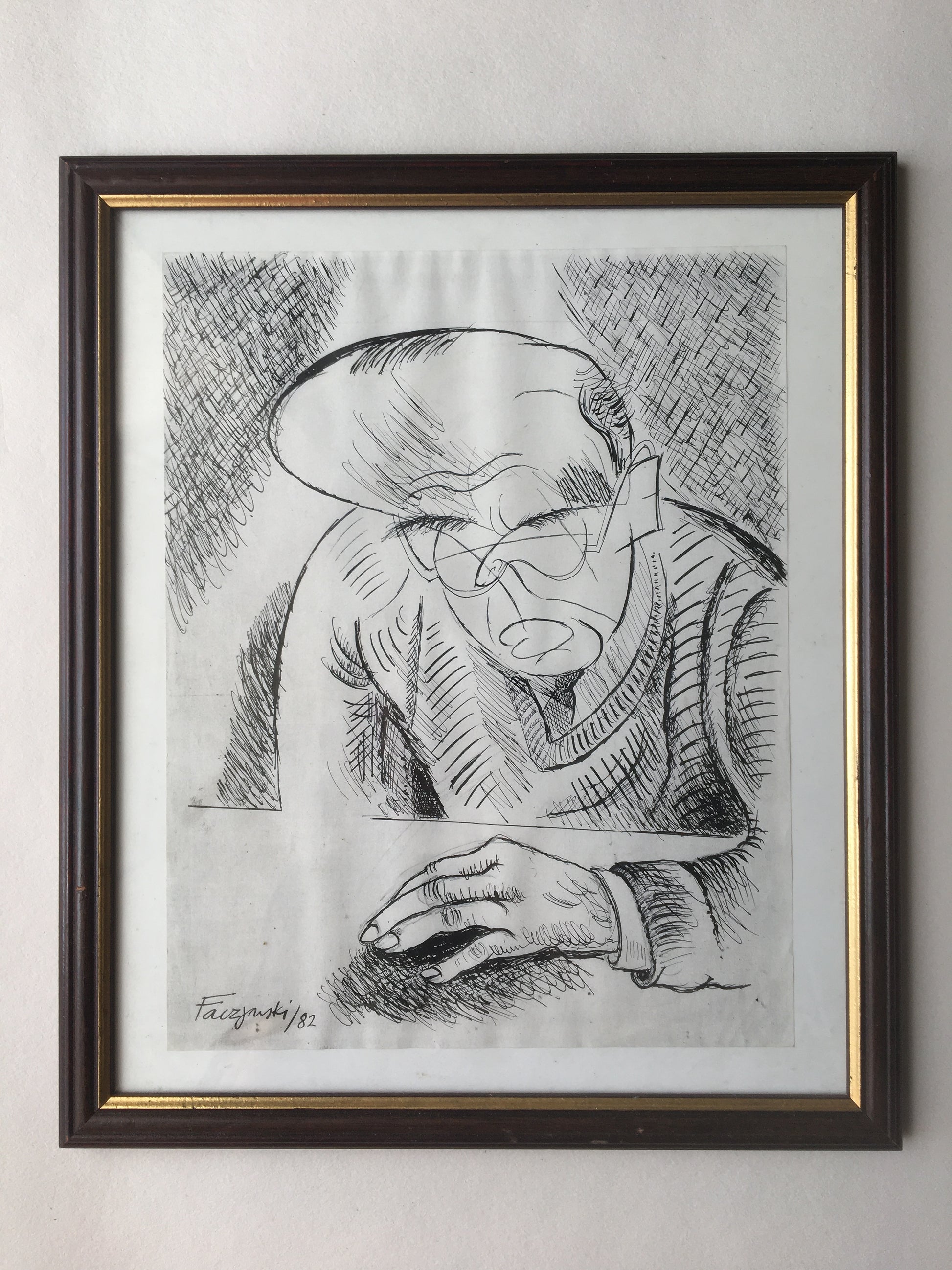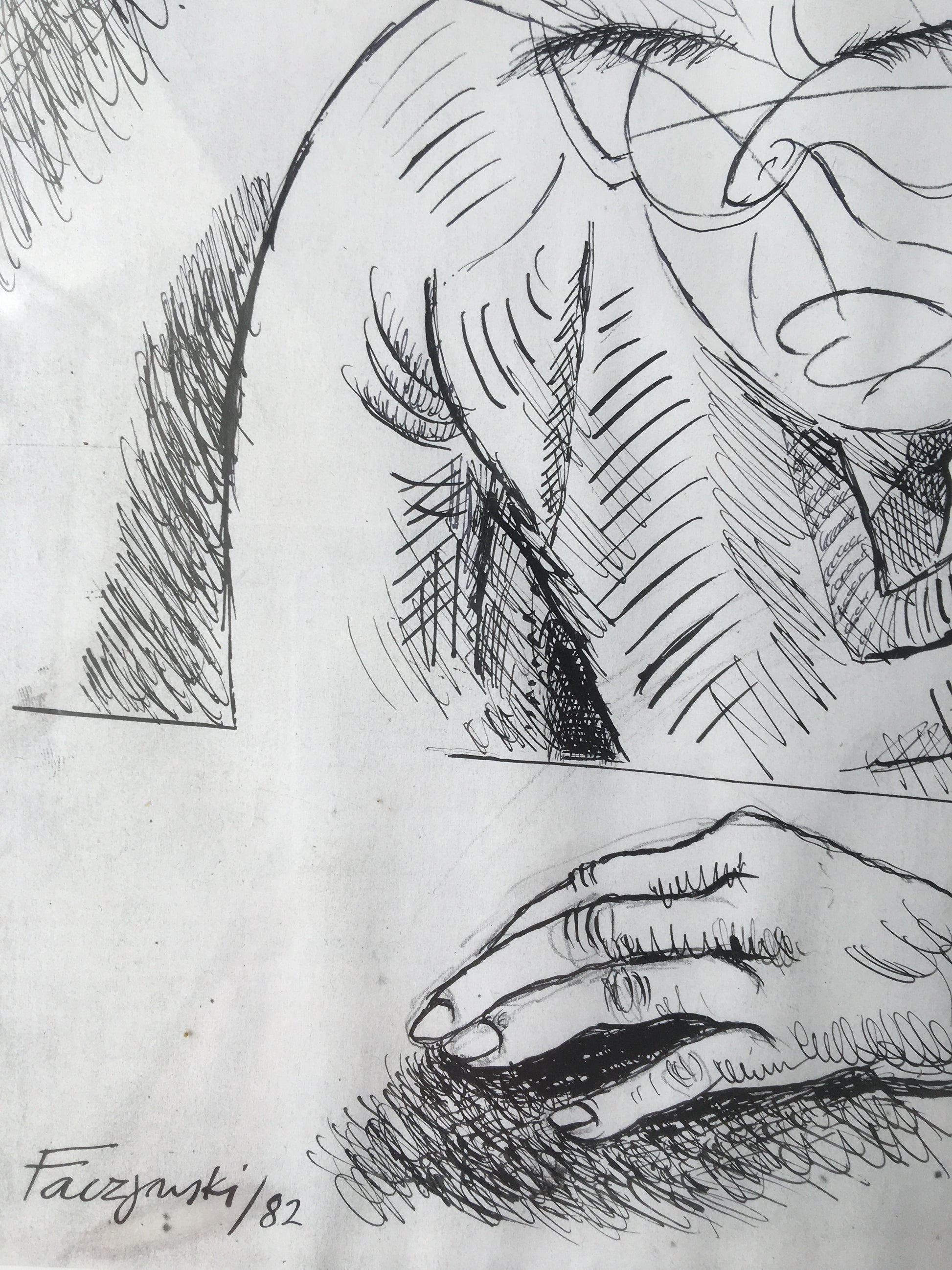 A pen & ink sketch by Polish impressionist & modern artist Jerzy Faczynski (b.1917). Framed, signed & dated 1982.