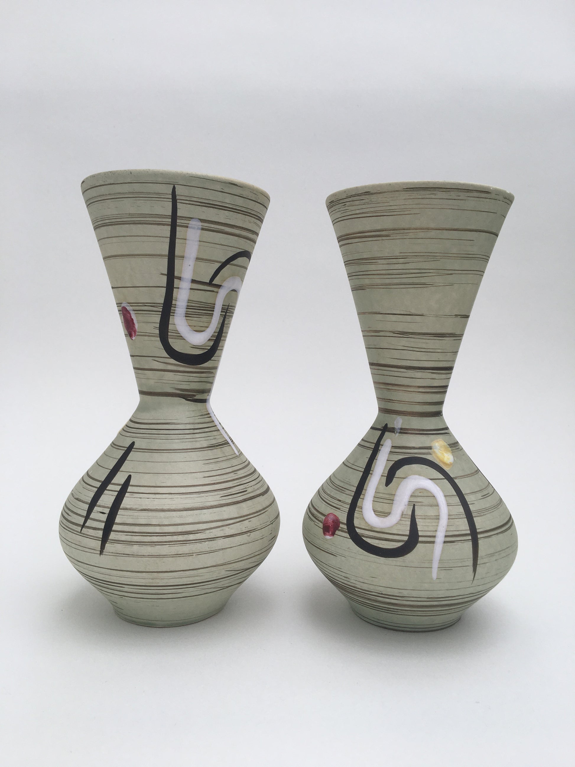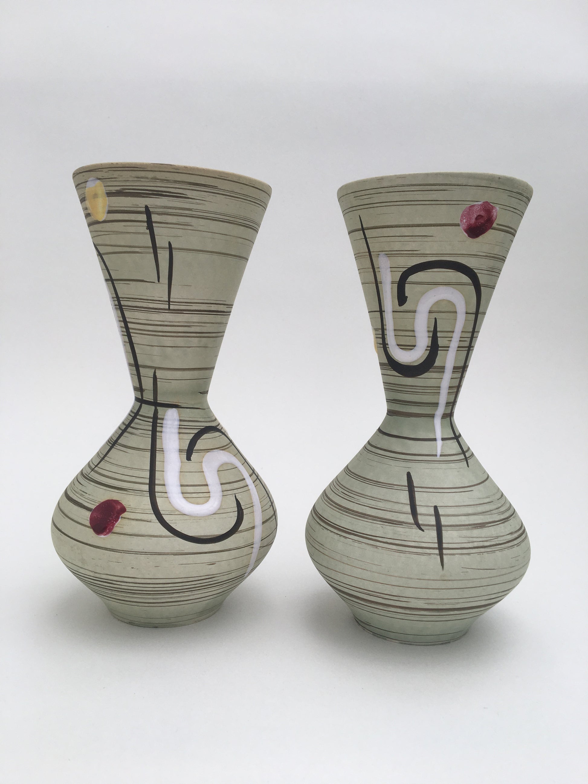 A pair of hand painted mid century Carstens vases, made in West Germany. Model number on the base '463/19'.